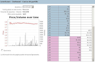 Ya está cogido el lay a 1.60, y el de 1.59 me parece que no será posible porque han aparecido 9.000€ a 1.60, que parecen confirmar la tendencia ascendente. Mantendré los backs tal y como estaban, aunque si comienza a subir con fuerza habría que eliminar el de 1.63.